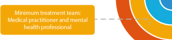 At a minimum, a treatment team in the community (as opposed to those in a hospital setting), should be made up of a medical practitioner and a mental health professional. In the case of self-help or brief digital therapies, the person may not have a multidisciplinary team, but should be connected to medical care to ensure safety.