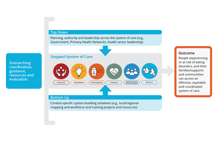 The National Strategy articulates the key components, standards and actions that are required to achieve an effective, equitable and coordinated system of care, and the roles of different stakeholders. Implementation of the National Strategy will help to achieve evidence-based national consistency, and ensure that people experiencing or at risk of eating disorders, and their families/supports and communities can access the care that they need, when they need it.