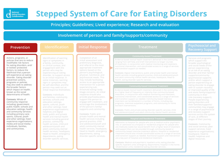 associated, potentially long-term, mental and physical health consequences (2). As well as reducing the burden on individuals, families and communities, eating disorder prevention can reduce pressure on the health care system (3). Further, eating disorder prevention activities can help to promote wider mental and physical health.